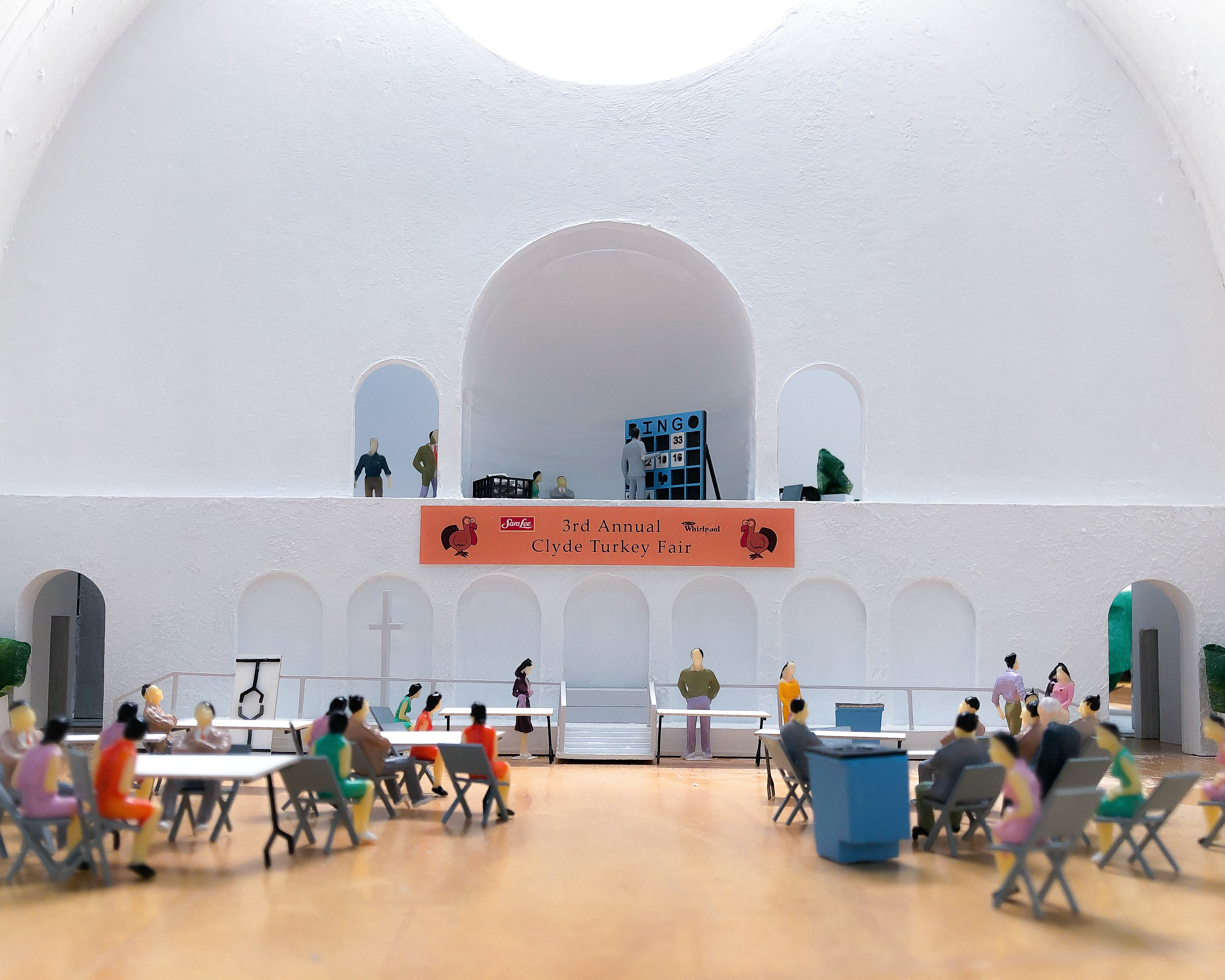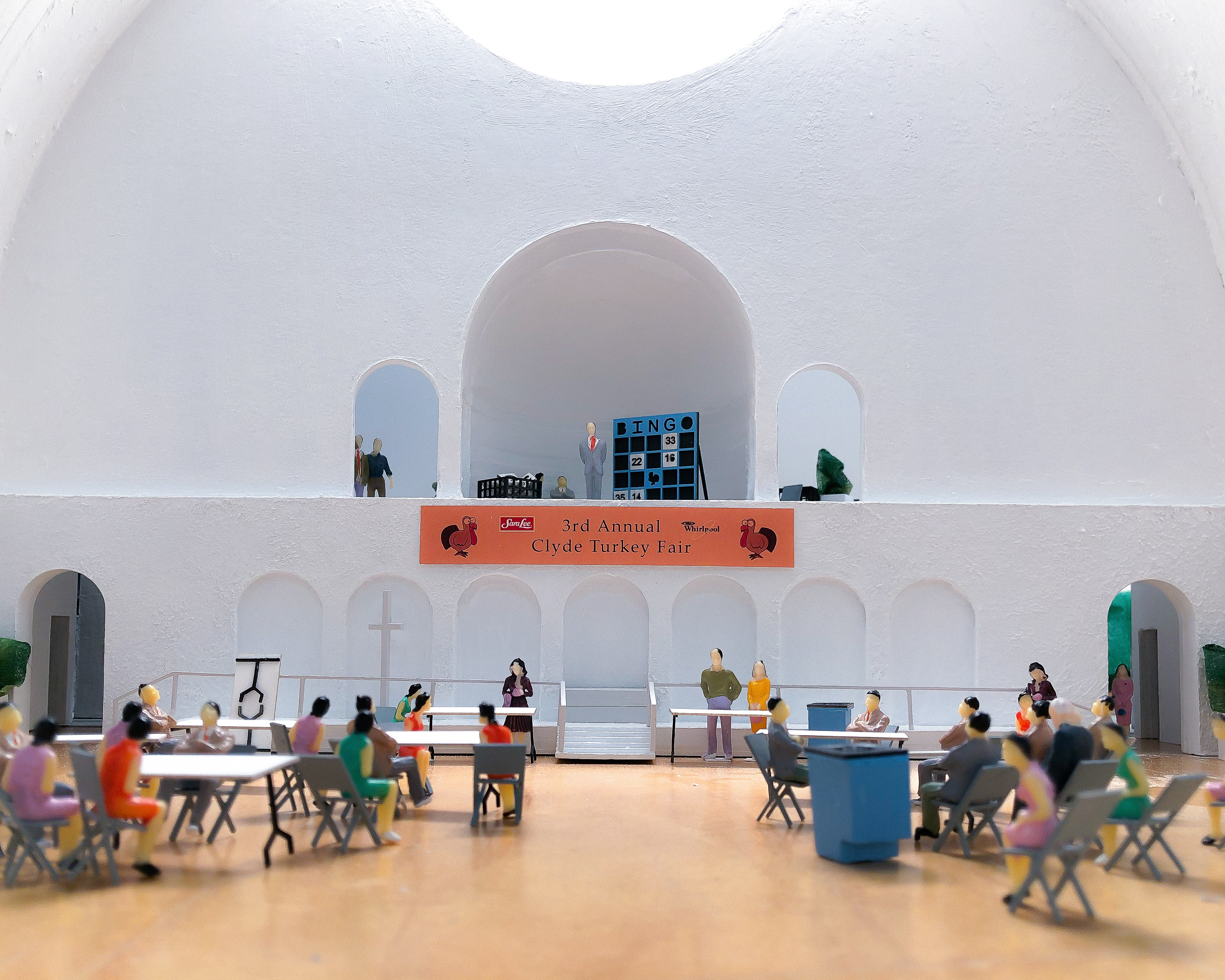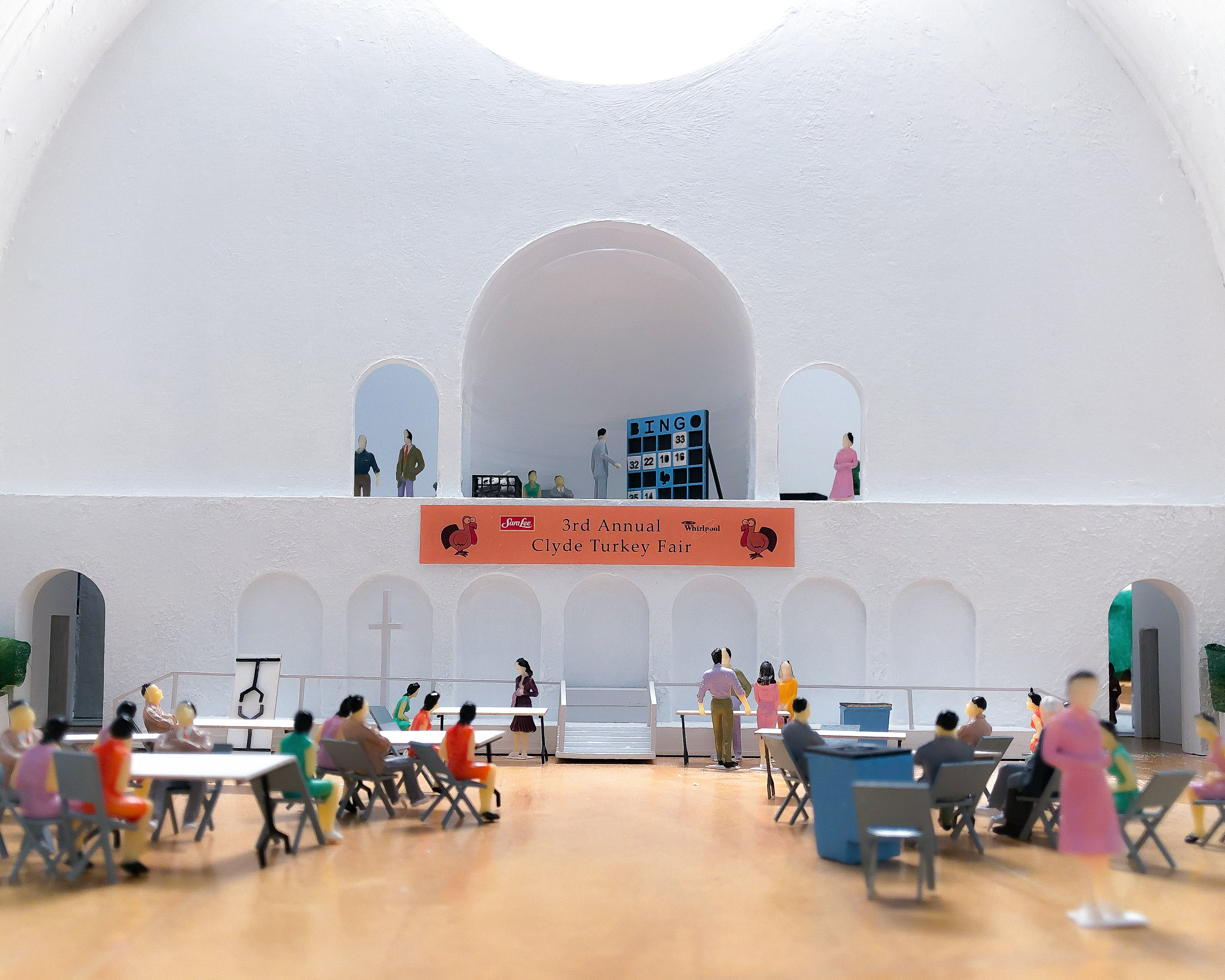 A stop-motion film sequence showcases the imaginary 3rd annual Clyde Turkey Fair, indicating one way the town may use its newest building.